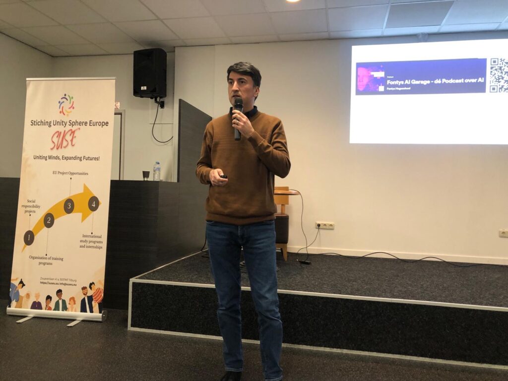 Erdinç Saçan, an educator and researcher at Fontys University, held an inspiring conference on the fascinating world of artificial intelligence in an event organized in collaboration with the Tilburg Turkish Youth Association and Stichting UnitySphere Europe (SUSE), where he met with 70 young people. Furkan Çınar presented the event.